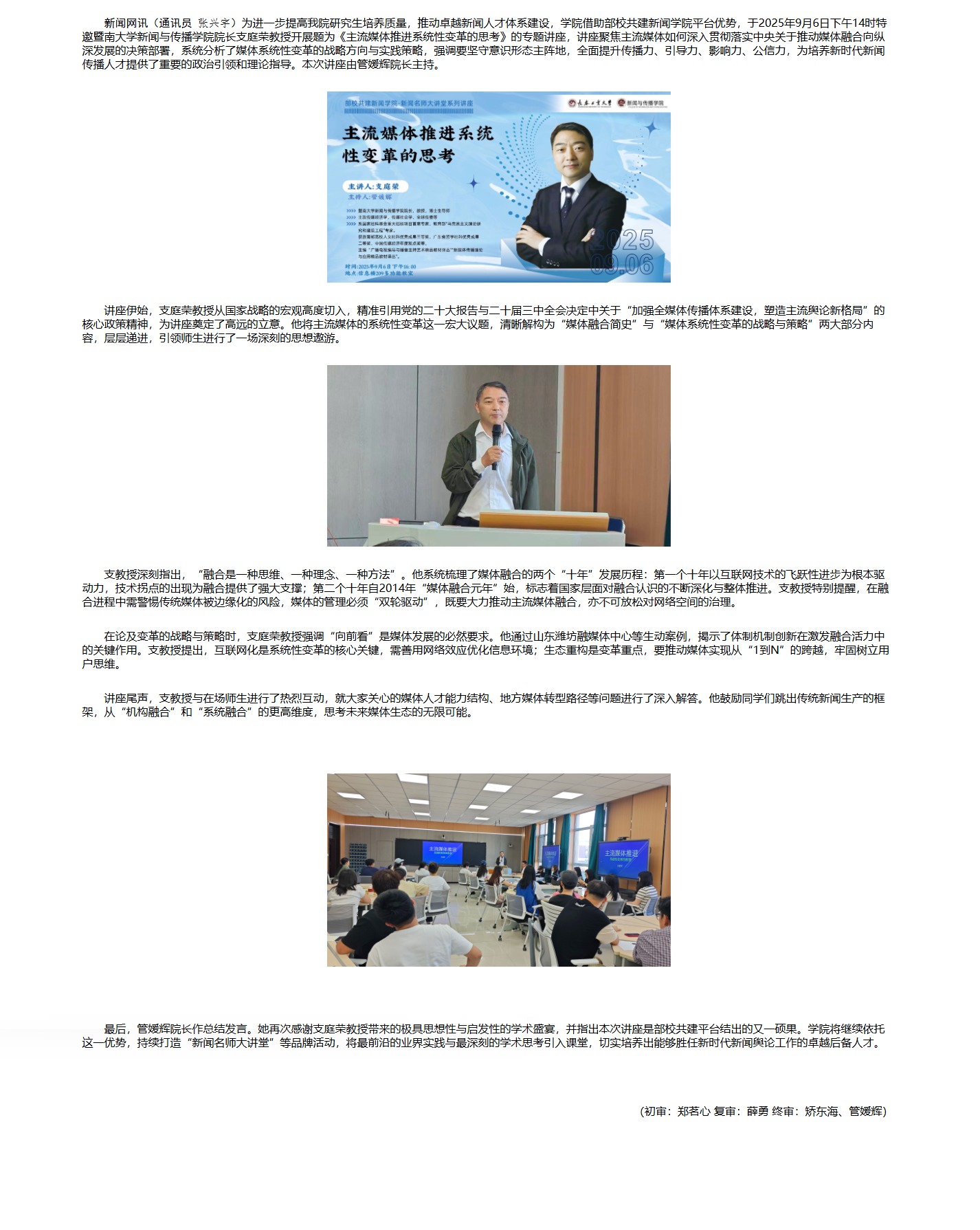 成人影视片 部校共建新闻学院——新闻名师大讲堂系列讲座《主流媒体推进系统性变革的思考》