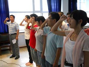本次活动主要分为观看党史影片和选举党支部委员两部分。影片《党的历史》介绍了中国共产党89年来从建党到抗日战争再到解放战争最后到全面建设繁荣发展所走过的艰辛历程,全面再现了党在各个重大历史时期带领中国人民所取得的辉煌成就,使同学们对中国共产党这一光荣的组织有了更加深刻的认识。影片结束后,党支部通过民主评议确定了学院学生党支部的组织委员和宣传委员,分别为刘洪亮和黄倩影。最后,全体党员在郭志伟老师的带领下面对党旗庄严宣誓。