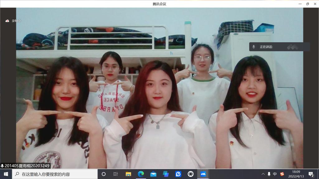 活动中,团支部成员以“云”会议方式,通过快闪(手势舞《燎原四方》)、团课(“学习新思想 青春勇担当”抗疫专题)、分享(志愿者分享抗疫故事)、宣誓(“同心抗疫 请党放心”宣誓)等互动形式,展现了共同抗“疫”的积极态度和战“疫”必胜的坚定决心。广大同学们纷纷表示要严格遵守校园疫情防控各项规定,保持良好心态,传播正能量,不造谣、不信谣、不传谣,为学校疫情防控工作贡献青春力量。