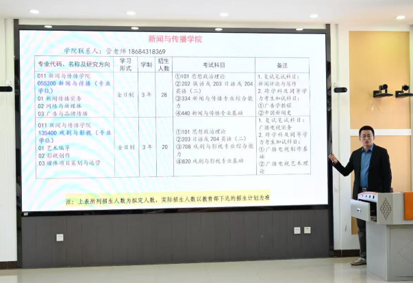 这是一场真诚的交流,也是一次专业的引航。我院新闻与传播硕士学位点负责人于欧洋老师、戏剧与影视学位点负责人尤洋老师,分别就学科特色、培养体系与发展路径展开深入讲解,从理论根基到行业前沿,从课程架构到个人成长,为在场学生勾勒出清晰的学业蓝图。