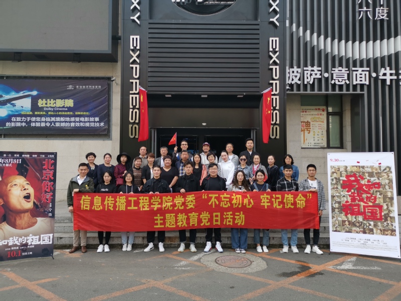 新闻网讯(通讯员刘永帆)为庆祝中国人民共和国70周年华诞,深入推进“不忘初心、牢记使命”主题教育活动,大力弘扬以爱国主义为核心的民族精神,激发学院党员的爱国之情、强国之志、报国之行,9月30日上午,信息传播工程学院党委组织全体教工党员部分学生党员观看建国70周年爱国主义教育影片《我和我的祖国》。