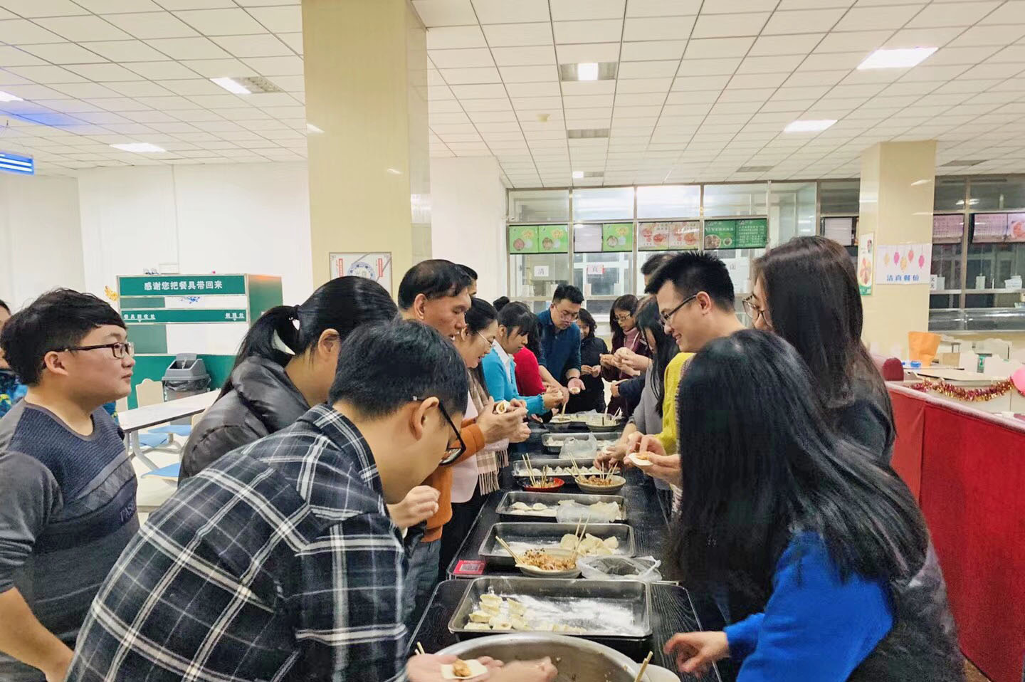 元旦联欢会在一段激情澎湃的开场舞中拉开了帷幕,点燃了现场的氛围。老师们用自编自演的歌曲、舞蹈、小品等庆祝新年,节目诙谐幽默、精彩纷呈,充分展现了老师们的多才多艺。同时还穿插各种趣味性互动游戏,老师们热情参与,配合默契,赢来了观众不断的掌声和呼喊声,抽奖活动更是激情四射,充分调动了现场的氛围。整场活动精彩纷呈、掌声不断,洋溢着欢乐的气氛。联欢会最后一项活动包饺子,更是将联欢会再次推向了高潮,热气腾腾的饺子让在场的老师们感受到了浓浓的团圆的味道。