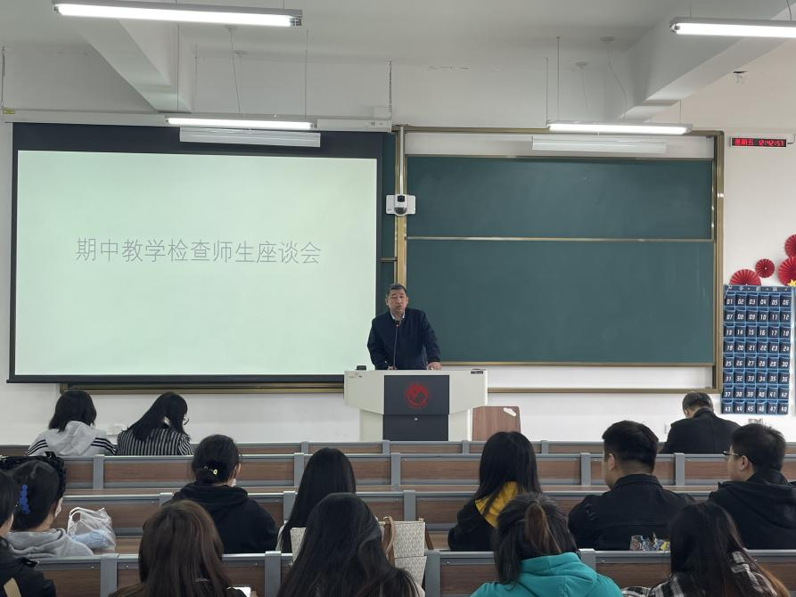 在新传楼301教室召开学院期中教学检查师生座谈会,院长吴德胜主持会议,学院全体教师、部分本科生和研究生代表参加了会议。