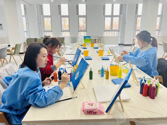 学校妇委会为了丰富女教工文化生活,舒缓工作压力,搭建交流平台,提升教职工艺术修养,进一步推进校园文化建设和美育教育,10月25日中午,在北湖西区博厚图书馆开展“丹青绘出心 巾帼绽芳华”油画体验活动,我院女教工积极参加了此次活动。