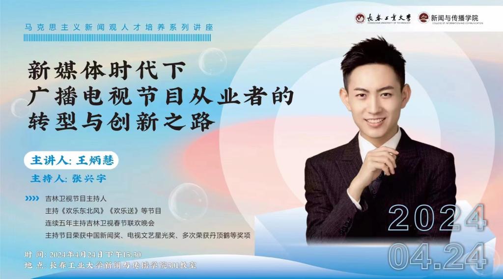 邀请到吉林卫视知名主持人王炳慧,开展了题为《新媒体时代下广播电视节目从业者的转型与创新之路》专题讲座。该讲座由我院广播电视编导专业教师张兴宇主持,我院2021级全体本科生参与了此次讲座。