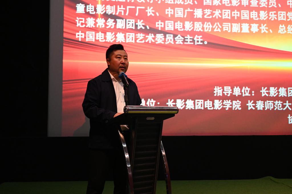 随后,长影集团监事会主席王亮代表主办单位对江平导演的到来表示热烈欢迎,王亮主席介绍了长影的历史和人才培养的重要理念,强调了电影艺术是人类文化的重要组成部分,是人们认识世界、表达情感、传递价值的重要途径。并强调所有电影人只有植根于人民艺术的再现、人民生活的心声,才能创造出具有生命力和影响力的艺术作品,并鼓励广大学子创作更多的优秀艺术作品。