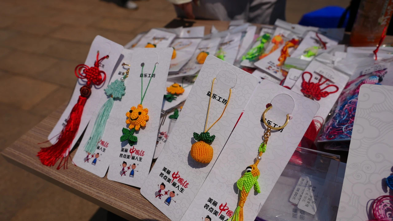 活动现场,由残疾人亲手制作的手工艺品、编织品和文创物件琳琅满目。每一件作品都凝聚着他们的匠心与对生活的热爱,细腻的编织纹路展现坚韧的意志,传递乐观的精神。志愿者们在义卖摊位前深情讲述作品背后的故事,吸引师生驻足。
