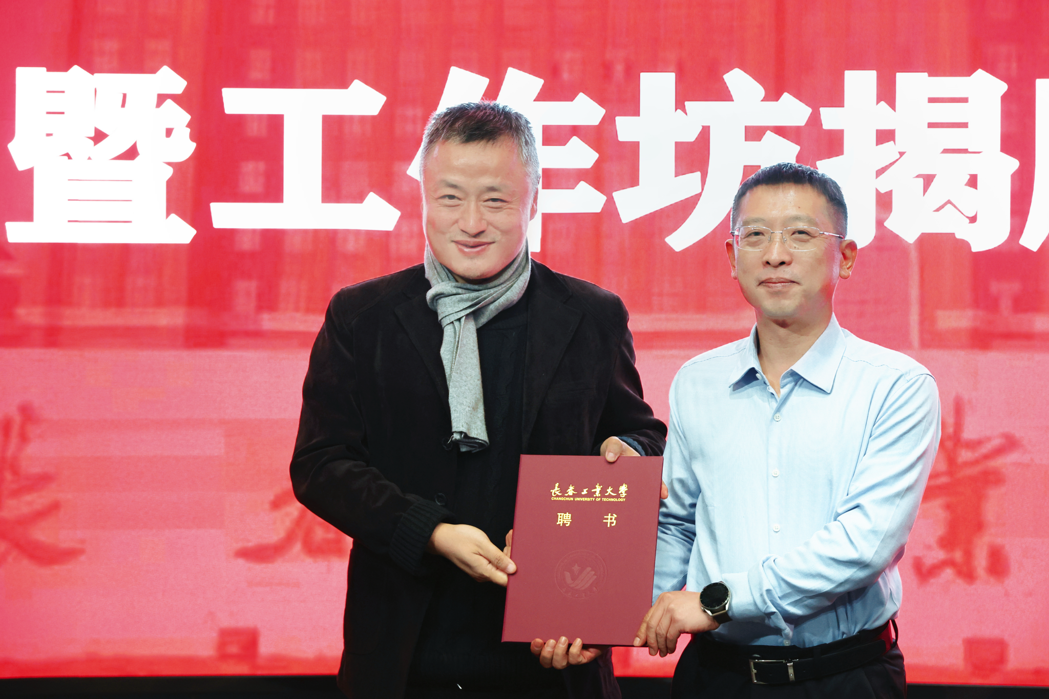 仪式上,付跃刚为唐克扬颁发客座教授聘任证书。唐克扬与成人影视片