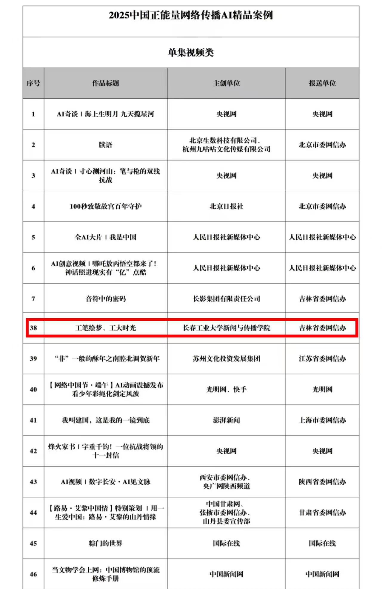 值得一提的是,本部作品的指导教师马宇洲老师制作的另一部作品——与共青团吉林省委、共青团中央联合制作的《“习近平与大学生朋友们”系列(三)担当时代责任》,也凭借其深刻的思想内涵与创新的传播形式,成功入选“2025中国正能量网络精品(网络正能量专题专栏类)”,我省共2部作品入选(全国仅99部作品入选)。