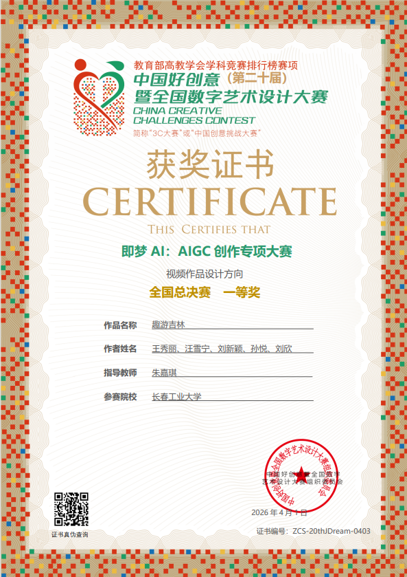 据指导教师朱嘉琪介绍,获奖作品《趣游吉林》以吉林省丰富的地域文旅资源为创作蓝本,通过独特的叙事视角和精湛的影像语言,生动展现了吉林的自然风光、民俗风情与时代风貌。在创作过程中,朱嘉琪老师从选题策划、剧本打磨到拍摄剪辑、后期制作,对学生进行了全流程、多维度的悉心指导。师生团队多次深入吉林各地采风调研,反复打磨作品细节,最终呈现出兼具艺术感染力和文化传播价值的优秀作品。